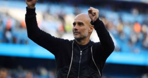 احتفل بيب غوارديولا مدرب مانشستر سيتي بتحقيق فوزه العاشر على...